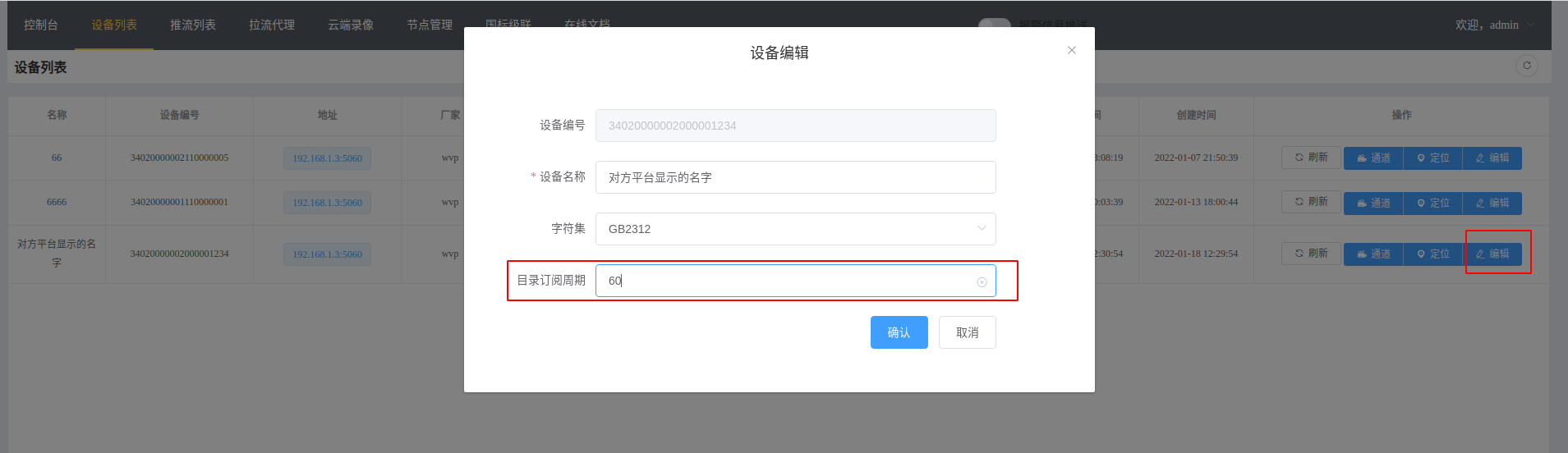 1.4.3. 编辑liveGBS设备信息,开启目录订阅